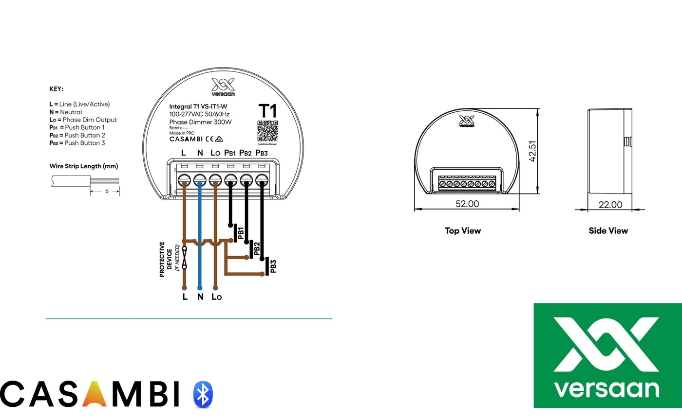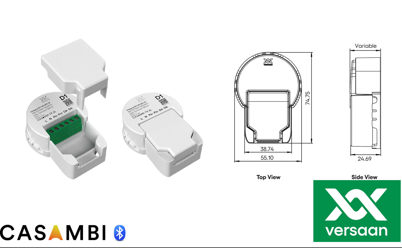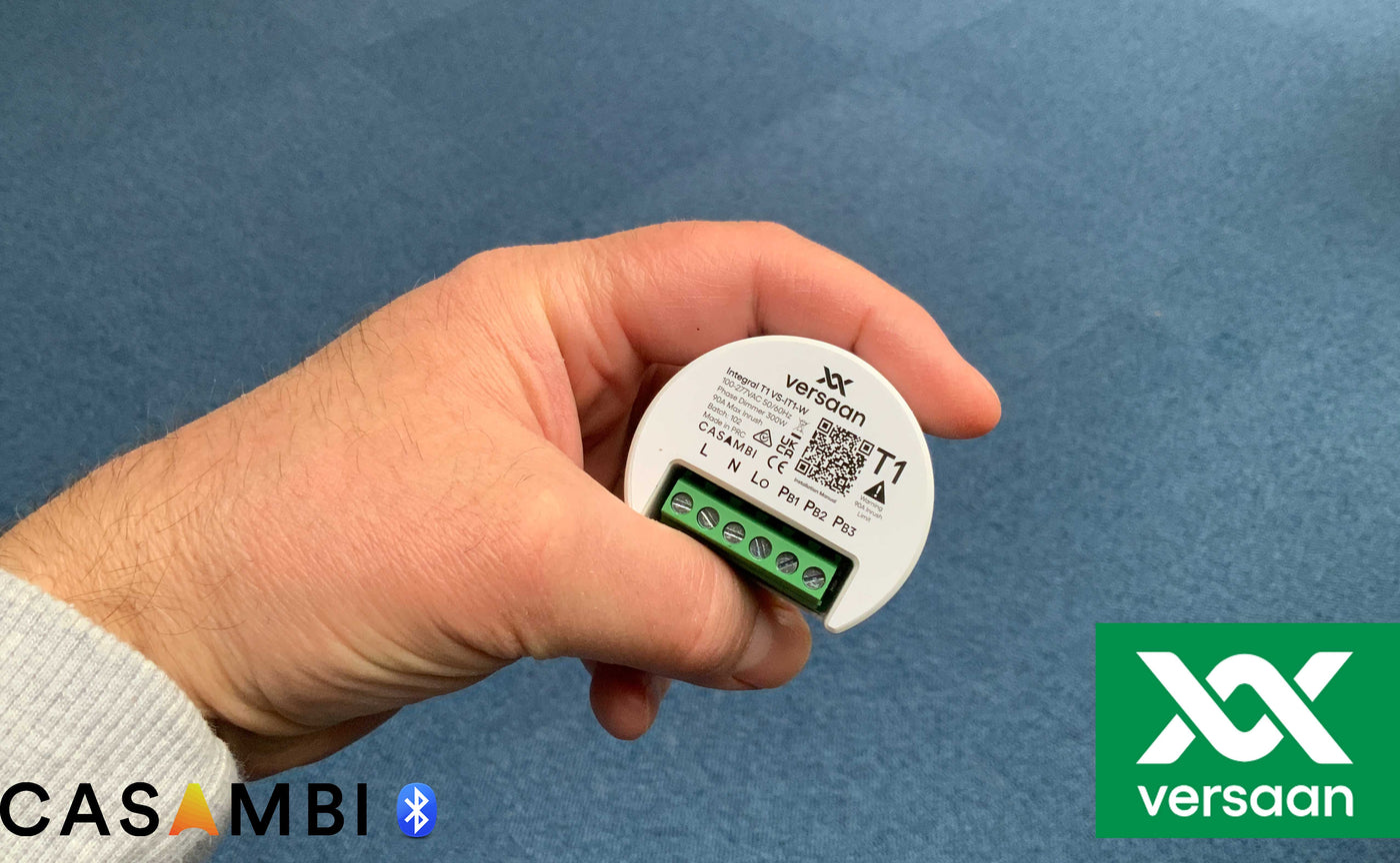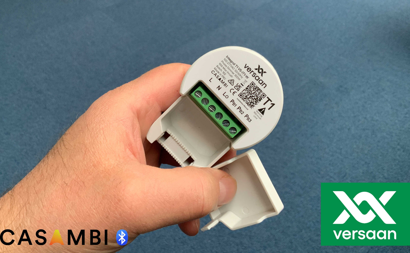 Uit een complete Versaan Casambi Integral serie is T1 een kleine 300VA inbouw trailing edge dimmer die bestand is tegen hoge aanloopstromen en over maar liefst over 3 impulsdrukker ingangen beschikt.