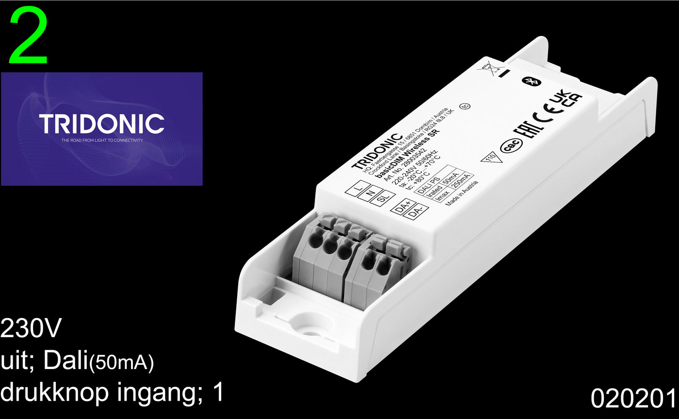 is een compact Casambi interface waarbij er wordt voorzien in een 50mA sterke DALI uitgang, voldoende om tot 25 drivers te voeden op de DALI bus.