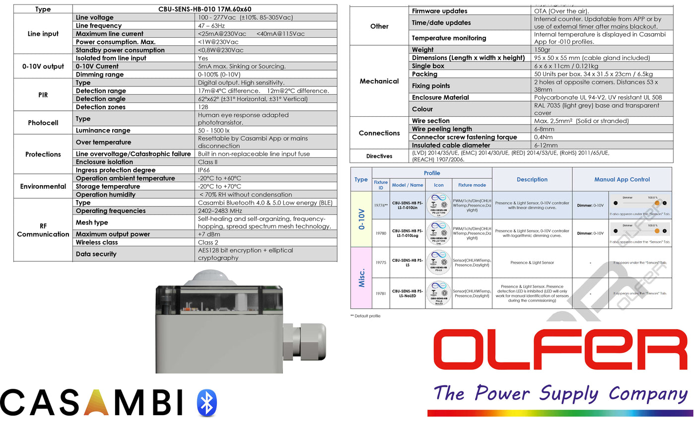 Naast aanwezigheid- en lichtdetectie in de app beschikt de CBU-SENS-HB-010 over een geïntegreerde 0-10V drivercontroller. Deze extra functie wordt actief wanneer één van de -010 profielen wordt geselecteerd.