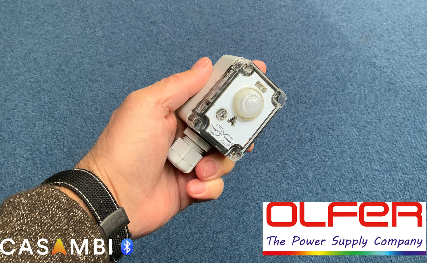 De aanwezigheid- en lichtsensorfuncties verschijnen in de sensorsectie van de Casambi app; de 0-10V controller wordt weergegeven in de armaturenlijst.